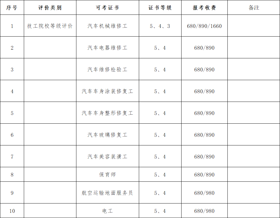 根据新教〔2021〕97号文件《关于规范院校职业技能等级认定收费管理工作的通知》,为进一步规范院校职业技能等级认定收费管理工作,明确职业技能等级认定收费标准,现将我校职业技能等级评价类证书收费标准公示如下:
